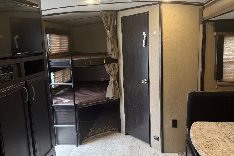 Sleeps up to 8 with a master queen bed, rear bunkhouse (perfect for kids!), plus convertible sofa and dinette.