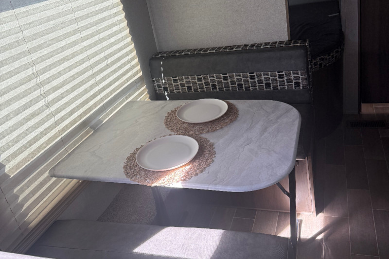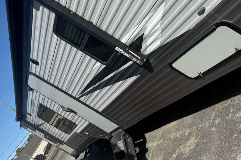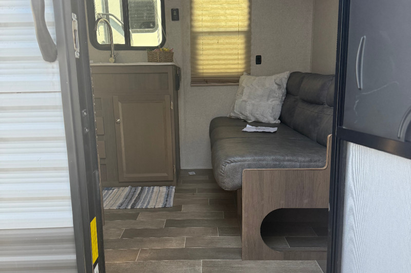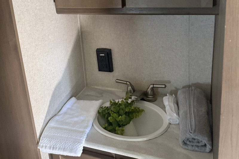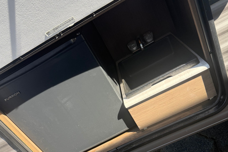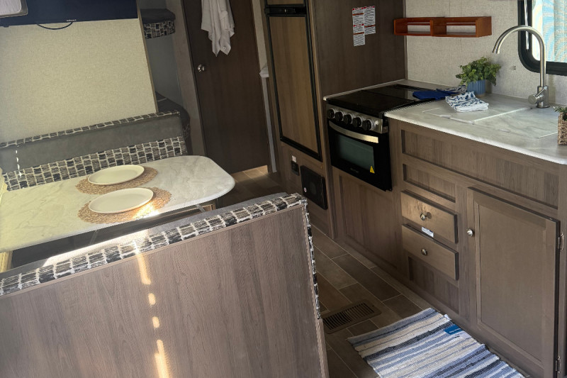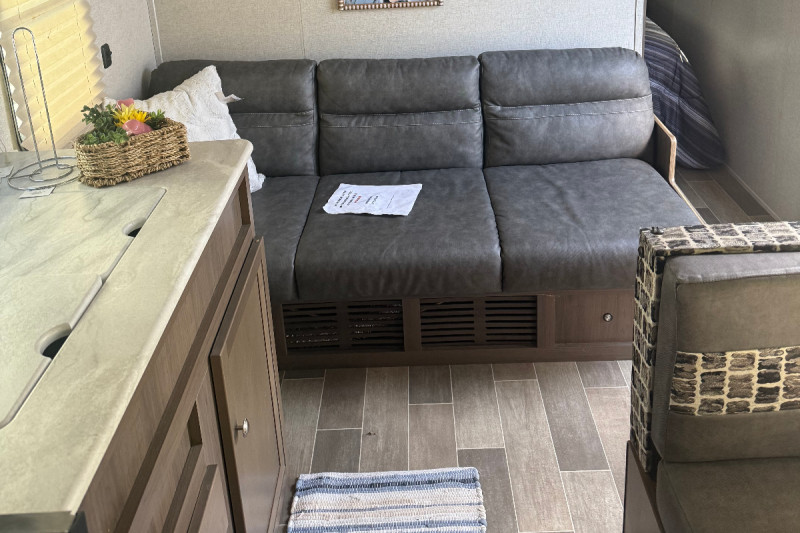 Inside, you'll find all the comforts of home—plentiful sleeping areas, a well-equipped kitchen, and convenient storage. Outside, enjoy the added bonus of an outdoor kitchen featuring a refrigerator and prep/hand-washing sink—perfect for cookouts under the open sky.