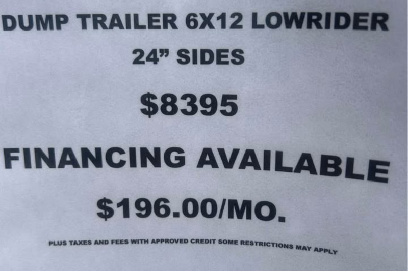 Dump trailer 6x12 with 2’ sides. By Triple Crown Trailers. Hydraulic dump bed. Solid construction. Can be seen at RV South 401 West Franklin Street, Sylvester. Financing is available with approved credit. Sales tax will be added.