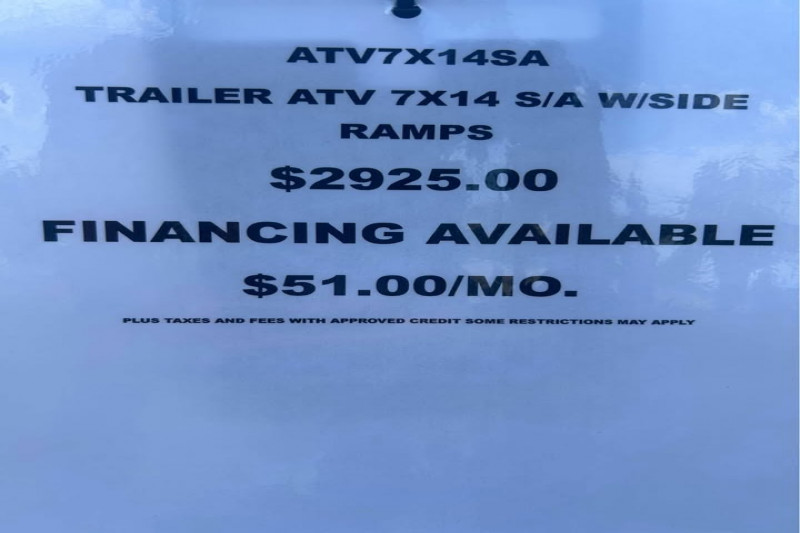 ATV trailer 7x14 with side and rear loading capability. Side bodies double as ramps for 4 wheelers. Rear ramp for side by sides. Triple Crown brand. Can be seen at RV South 401 West Franklin Street. $2925. Financing available with approved credit.